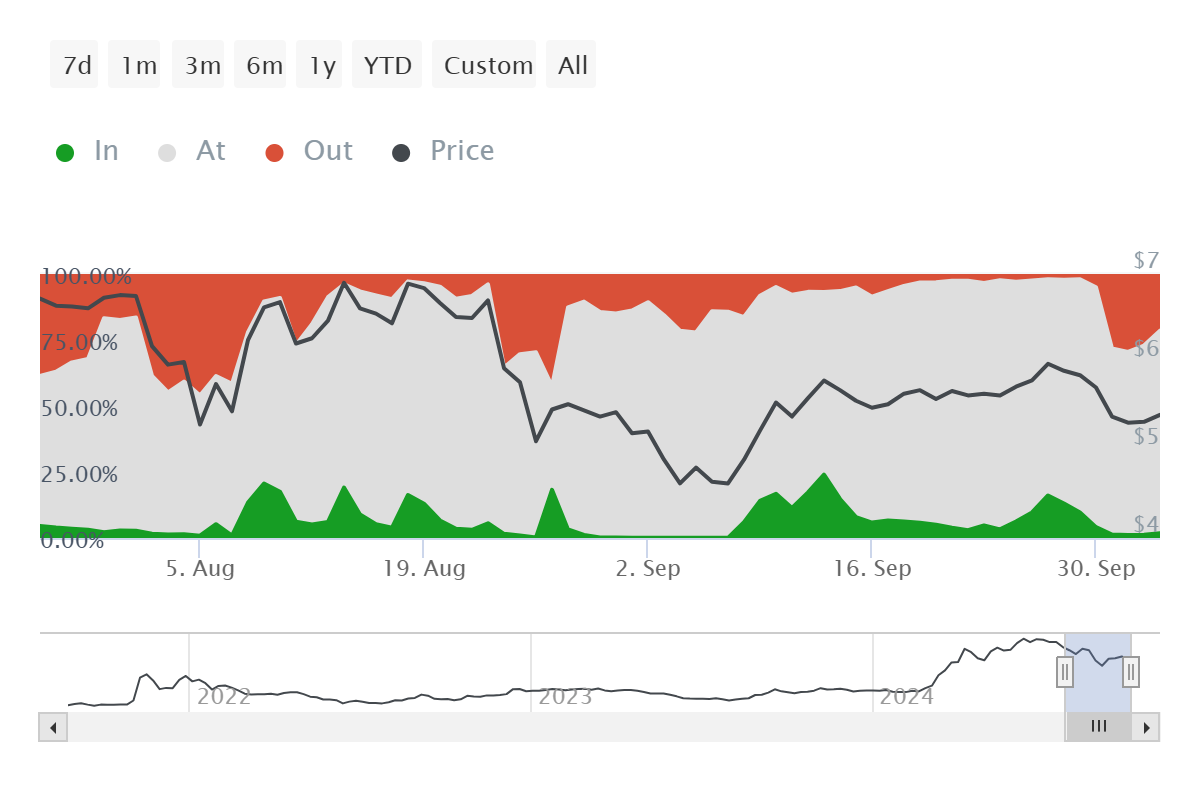 Vanligvis ville et høyere antall lønnsomme investorer være tilbøyelige til å selge, noe som kunne utløse et prisfall. Imidlertid betyr det faktum at det er så få lønnsomme eiere at salgspresset er lavt, noe som er et bullish tegn for Toncoin.