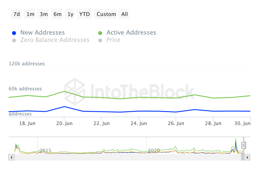 Når en eiendel ser en økning i daglige aktive og nye adresser, betyr det at flere investorer kjøper. Generelt blir økt nettverksaktivitet ofte sett på som en indikator på positivt markedssentiment og potensial for fremtidig vekst.