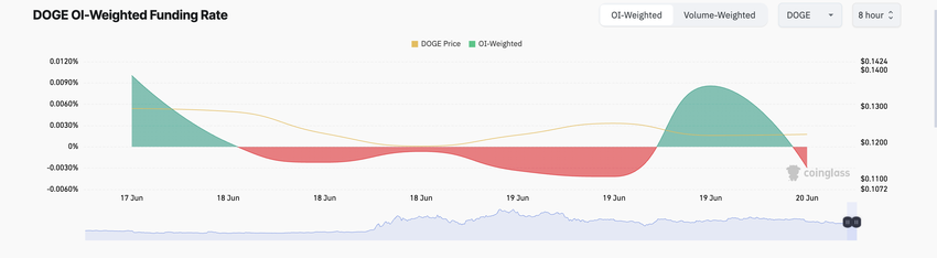Siden dette skjedde, har DOGEs finansieringsrate på tvers av kryptovalutabørser vært overveiende negativ. I skrivende stund var meme-myntens vektede finansieringsrente -0,003 %.
