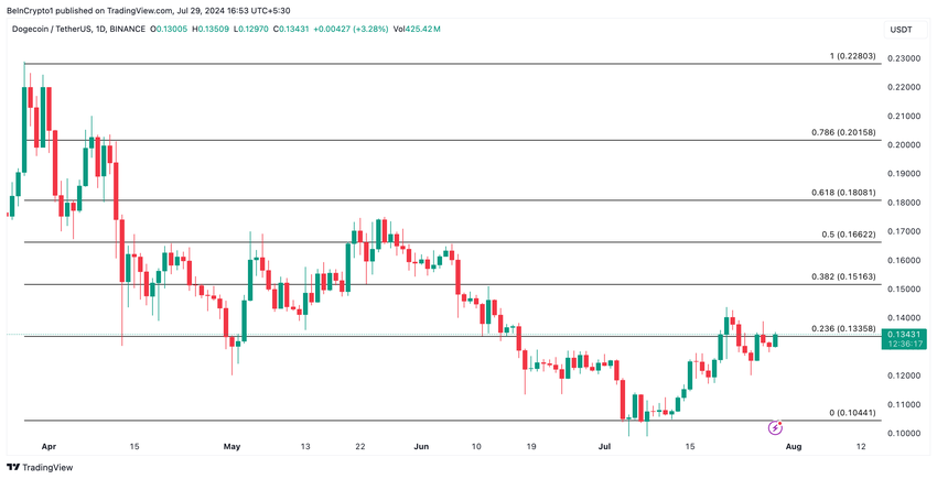 Hvis en bullish trend vedvarer, kan DOGEs pris stige til en månedlig høyde på $ 0,15.