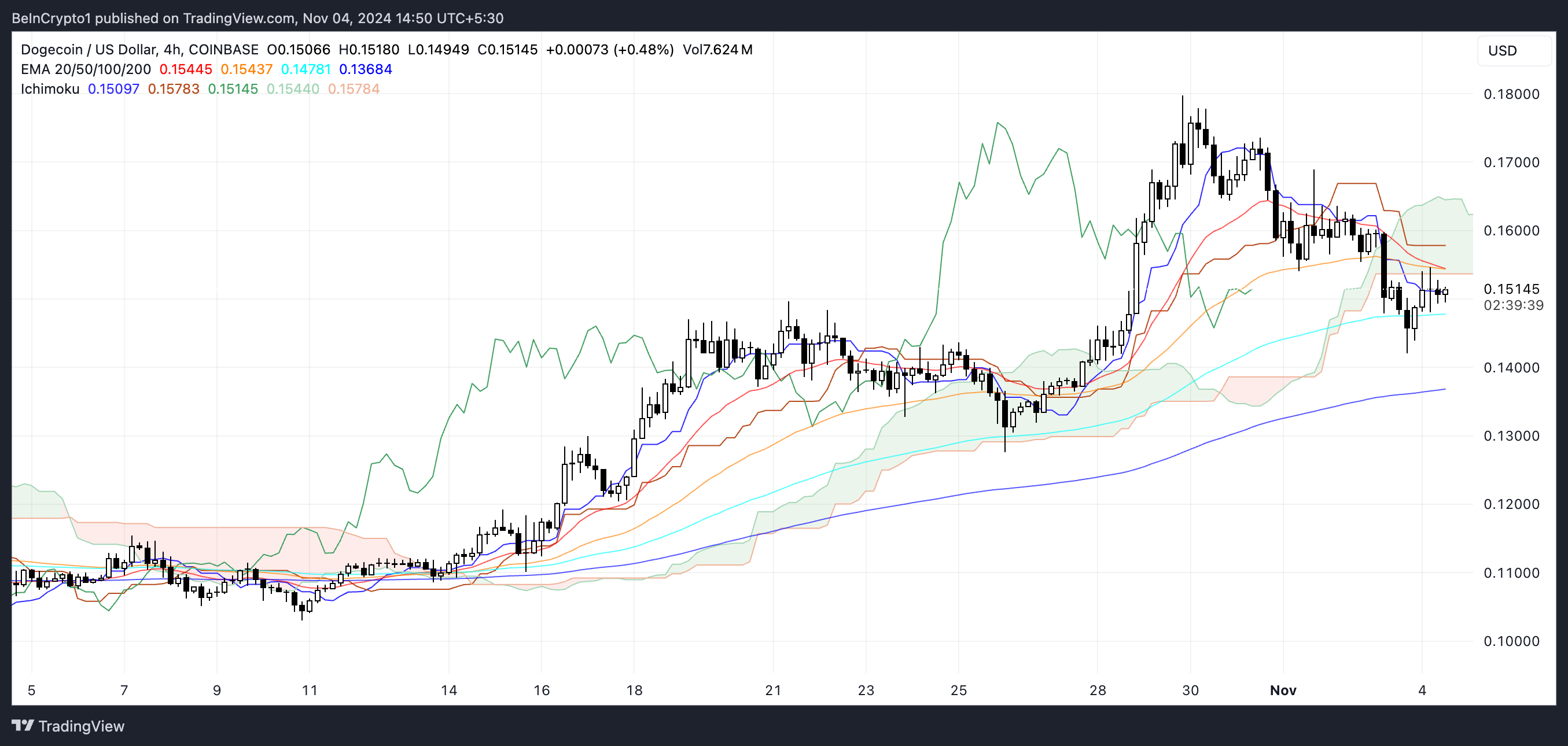 DOGE Ichimoku-skyen viser et bearish scenario