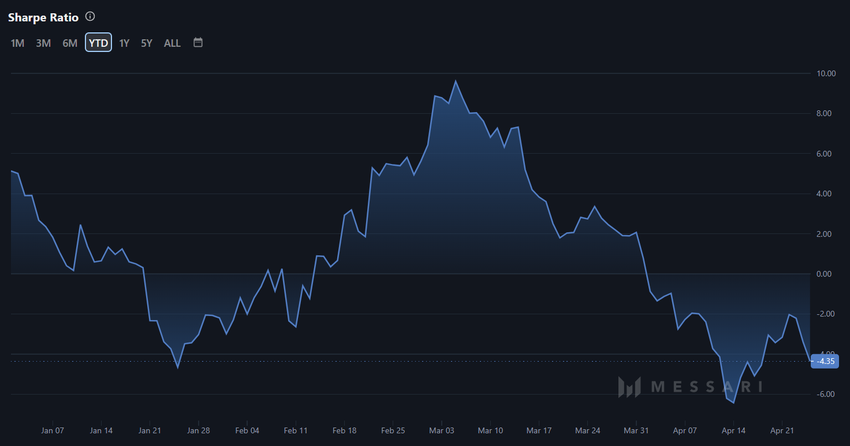 På den annen side betyr en negativ Sharpe-ratio tap for aktivumet siden den risikojusterte avkastningen er fullstendig ugyldiggjort. Dette er tilfellet med DOT, som har en ratio på -4,32, noe som tyder på manglende insentiver for tradere og investorer.
