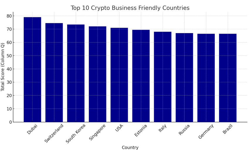 Dubai hevdet topposisjonen med en score på 79 av 100, takket være sin progressive regulatoriske holdning og omfattende støtte for blokkjedeprosjekter.