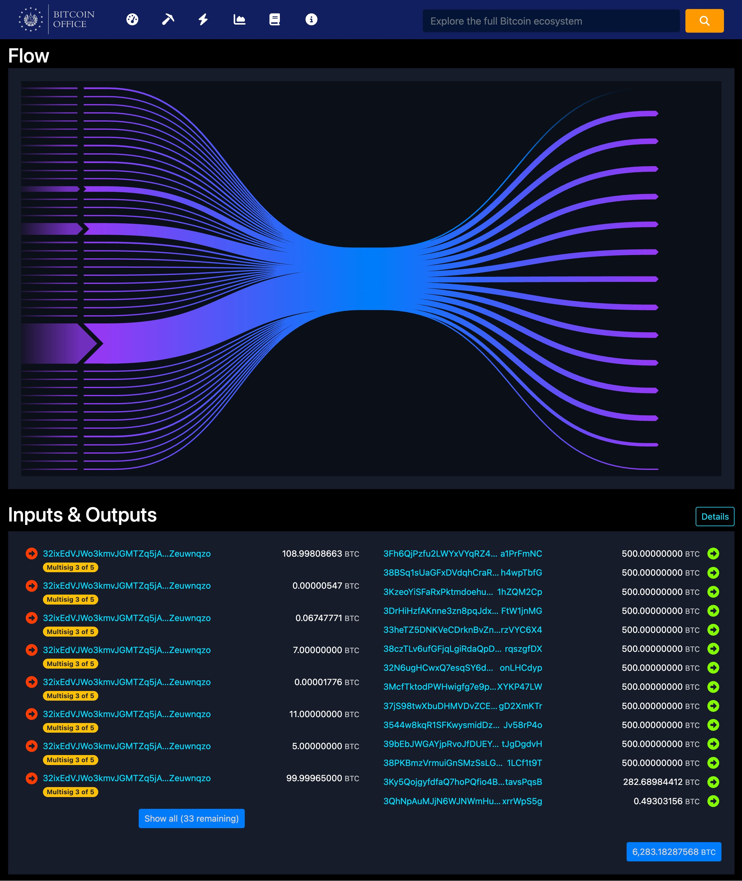 Den 30. august bekreftet det nasjonale Bitcoin-kontoret at de vil lagre reservene på flere adresser, hver med maksimalt 500 BTC.