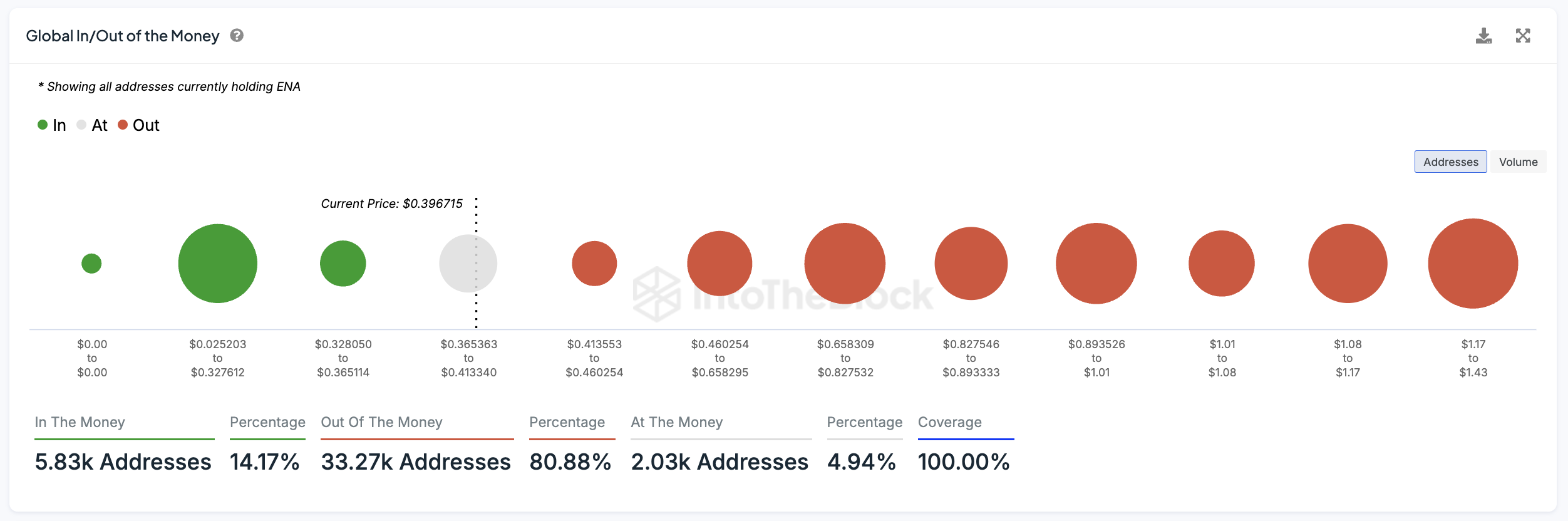 Global In/Out of the Money (GIOM)-målingen er et verktøy brukt til å bestemme lønnsomheten til adresser som holder et aktiva. Den analyserer gjennomsnittlig kjøpspris for tokens på tvers av ulike lommebøker for å identifisere støtte- og motstandsnivåer.