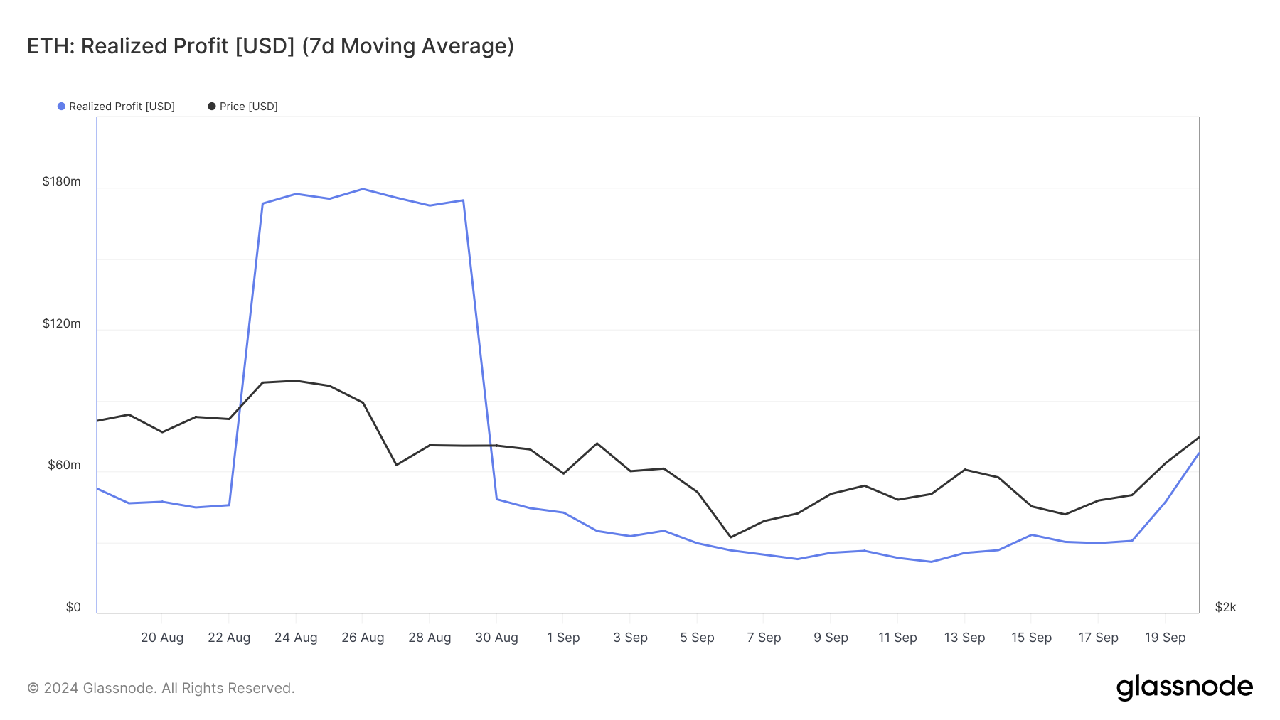 De siste to dagene har investorer solgt nesten $ 40 millioner verdt av ETH, noe som markerer den første betydelige salgsaktiviteten på tre uker. Denne plutselige økningen i realiserte profitter er en klar indikasjon på at noen investorer tar ut for å kapitalisere på den nylige prisøkningen.