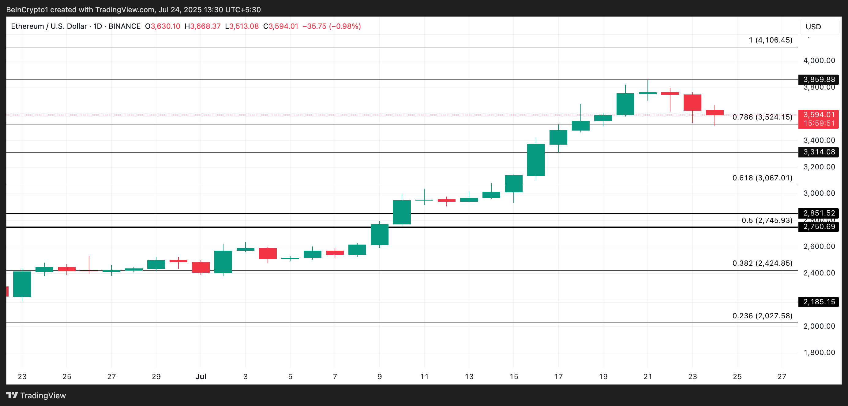 I skrivende stund handles altcoinen til $ 3553, ned 5 % siden mandag. Hva utløser dette fallet?