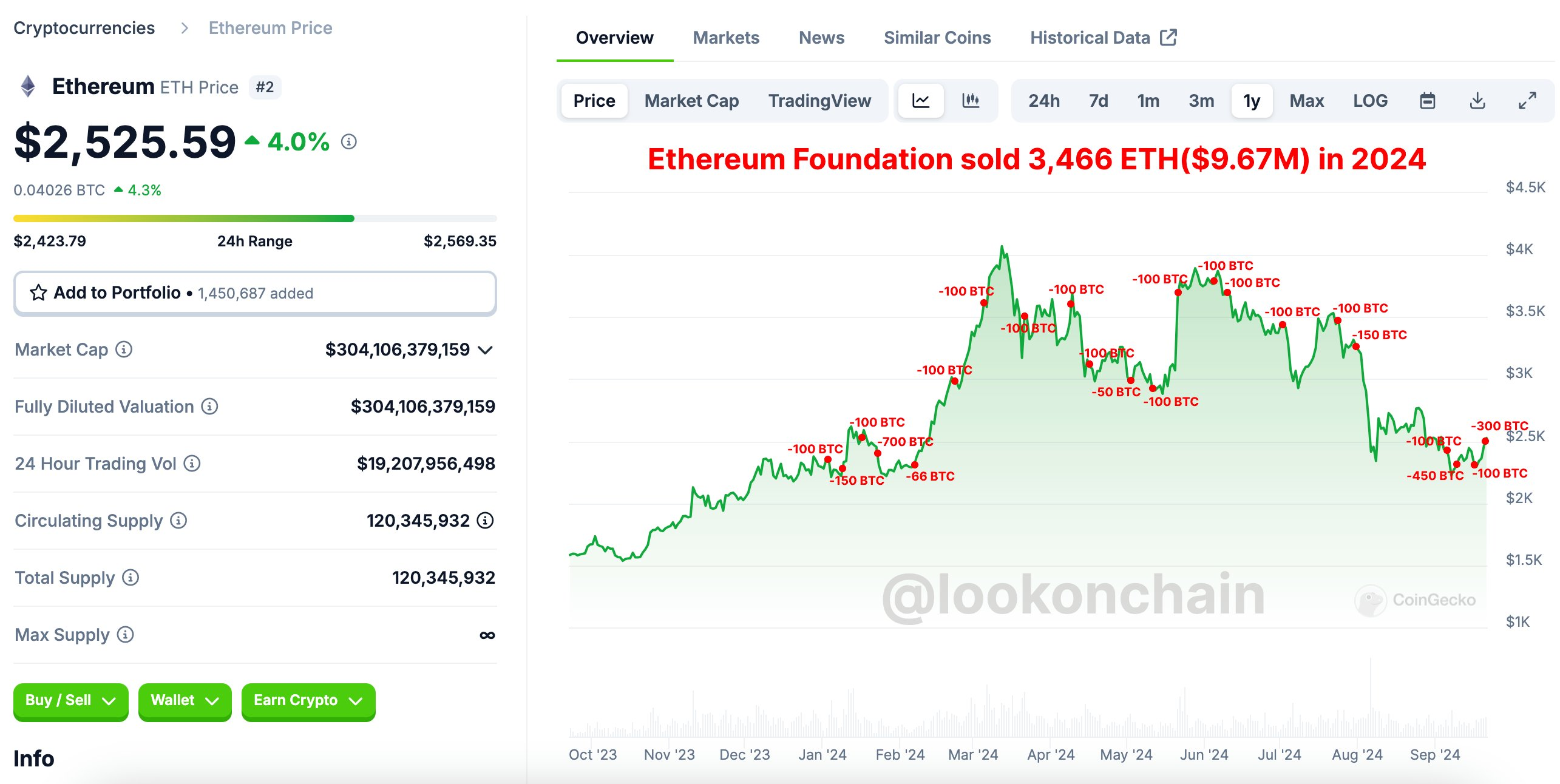 En annen plattform, Lookonchain, avslørte et større mønster. Siden årets start har stiftelsen solgt 3 466 ETH, verdsatt til omtrent $ 9,67 millioner. Lookonchain rapporterer at disse likvidasjonene beløper seg til $ 421 000 i ETH hver 11. dag. Merkbart er at disse tallene ikke inkluderte den samlede overføringen av 35 000 ETH, verdt om lag $ 100 millioner, til Kraken-børsen i august.