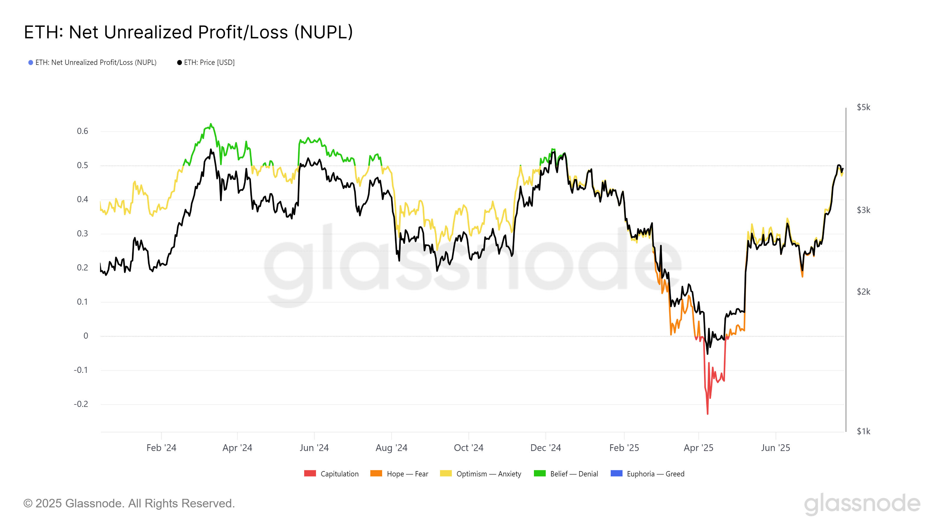 Ethereum nærmer seg for tiden denne terskelen, som tidligere har markert begynnelsen på kraftige oppadgående prisbevegelser. Etter hvert som NUPL-indikatoren fortsetter å stige, gir den en sterk historisk presedens for Ethereums neste prisrally.