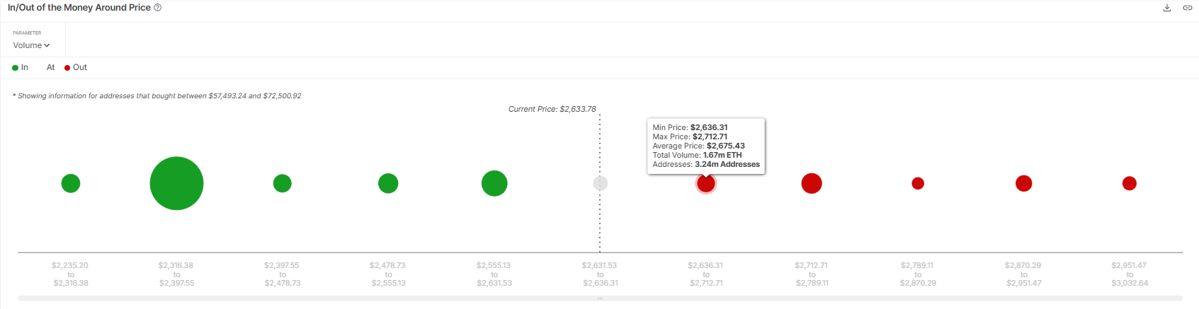 Ethereum står for tiden overfor en betydelig forsyningssone på 1,67 millioner ETH, verdsatt til over $ 4,4 milliarder. Denne forsyningen ble anskaffet mellom $ 2635 og $ 2712, og skaper et formidabelt motstandsnivå. Investorer som holder dette volumet vil sannsynligvis selge og sikre seg gevinster, noe som utøver salgspress og begrenser Ethereums evne til å stige.