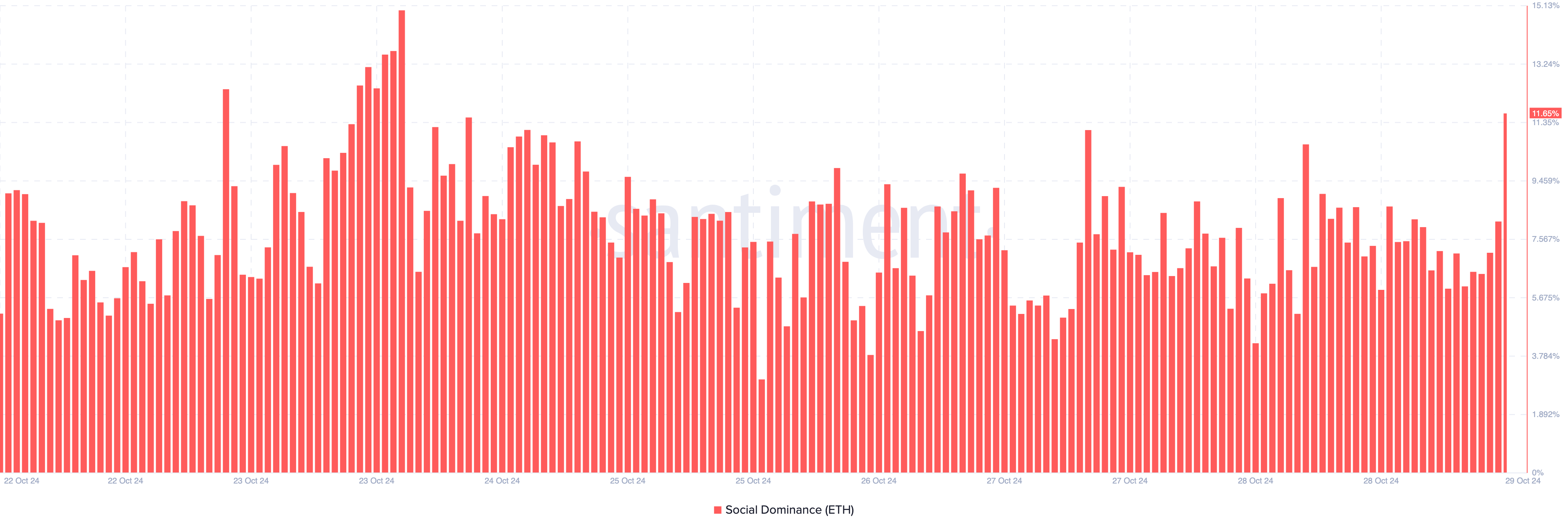 I tillegg har Ethereum sin sosiale dominans økt, noe som indikerer økt interesse for og diskusjoner om kryptovalutaen på sosiale plattformer.
