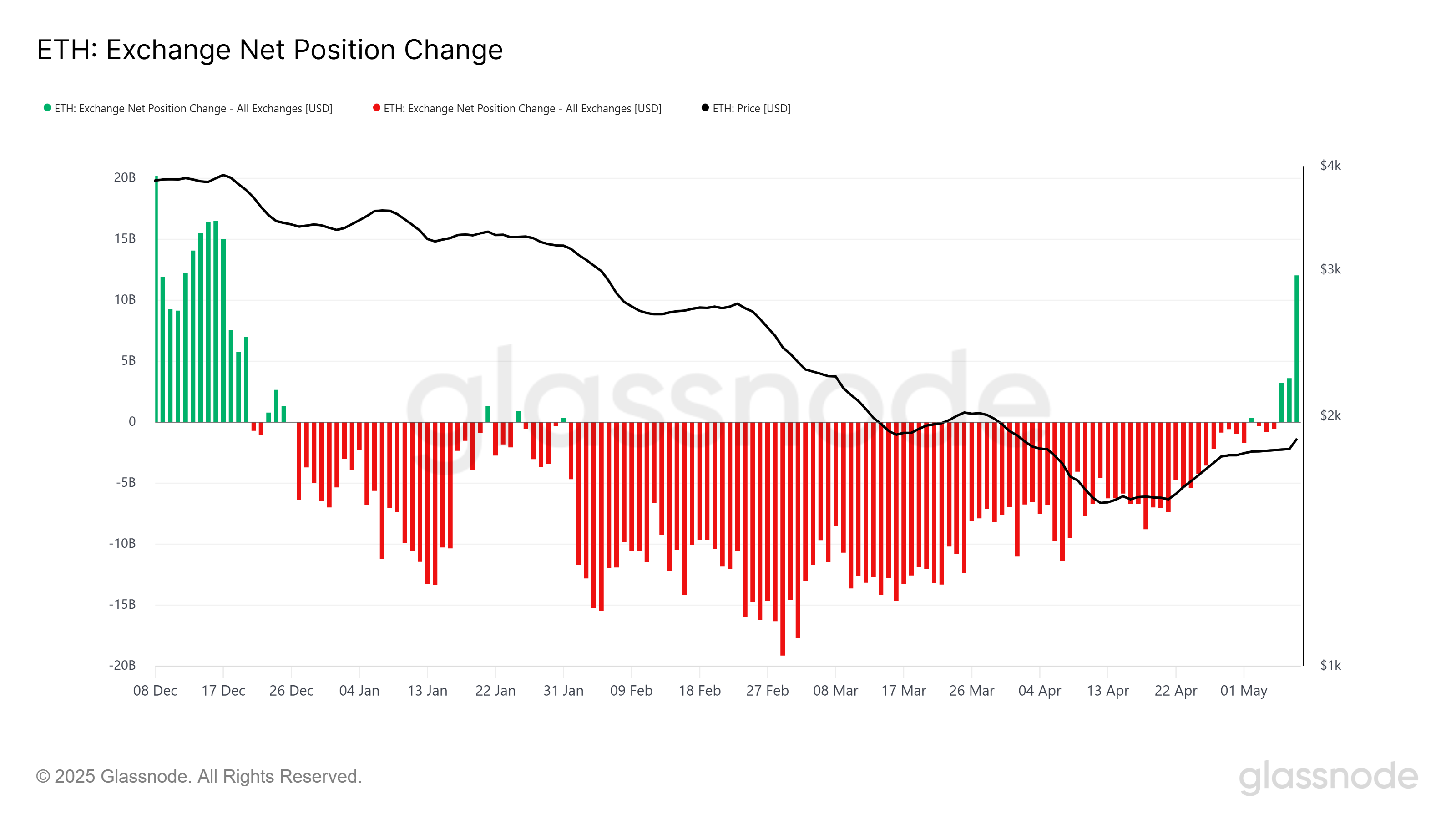 Pectra-oppgraderingen har betydelig påvirket markedsstemningen rundt Ethereum, med børser som har registrert netto innstrømninger på $ 15,6 milliarder siden lanseringen. Alene den 8. mai ble ETH verdt $ 12 milliarder solgt, noe som markerer det høyeste enkeltstående salget på over fem måneder.