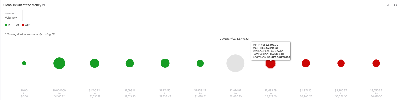 Imidlertid er det betydelig salgspress i dette området, hvor ETH verdt $ 27,8 milliarder befinner seg. Dette kan begrense Ethereums evne til å opprettholde bærekraftig vekst, da risikoen for storskalasalgs ved høyere priser er stor.