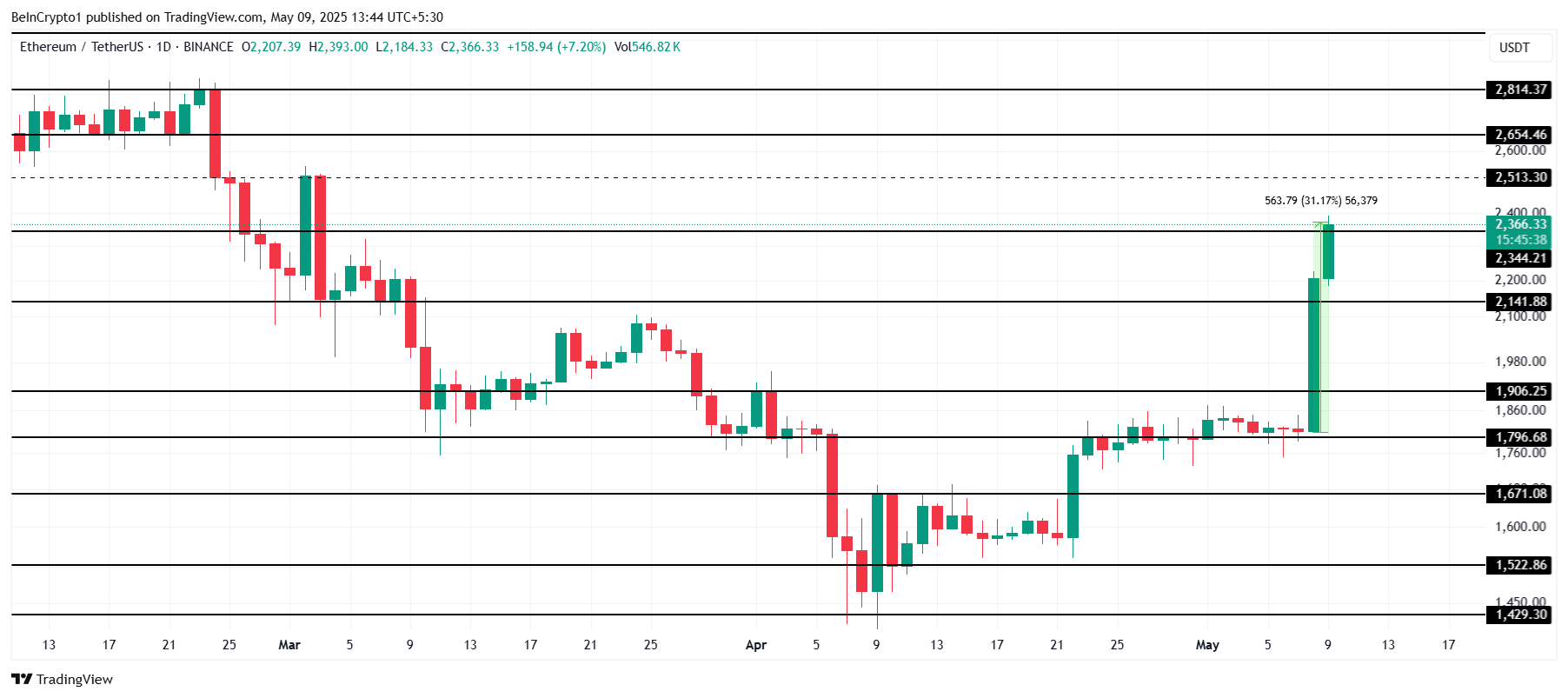Ethereum (ETH) har opplevd sin største enkeltstående oppgang siden 2021, og steg 31 % på bare 24 timer. Oppgangen følger den vellykkede implementeringen av Pectra-oppgraderingen, som har hjulpet ETH nærmere et viktig motstandsnivå på $ 2500.
