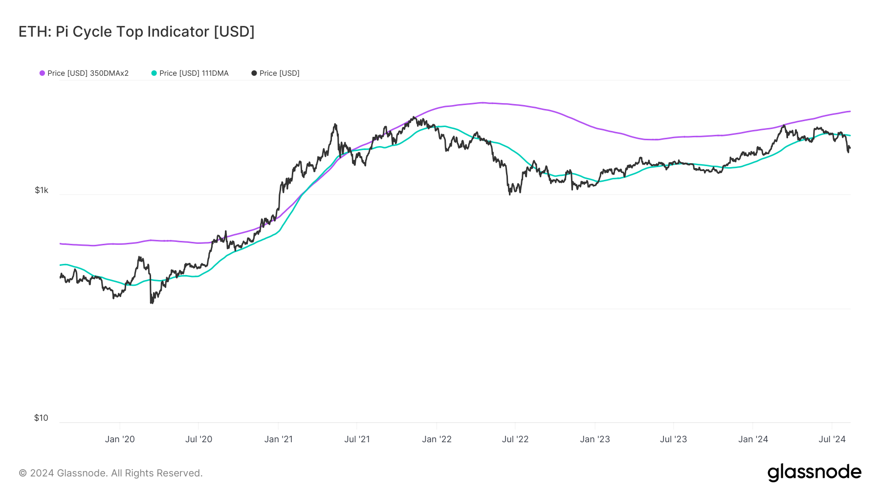Ifølge denne indikatoren kan Ethereum potensielt nå en all-time high på $ 5 367 innen de neste 350 dagene. På en kortere 111-dagers tidsramme kan ETHs verdi klatre til $ 3 295. Hvis prisen holder seg rundt dette nivået, kan Ethereum kanskje ikke overgå sin tidligere all-time high i 2024.