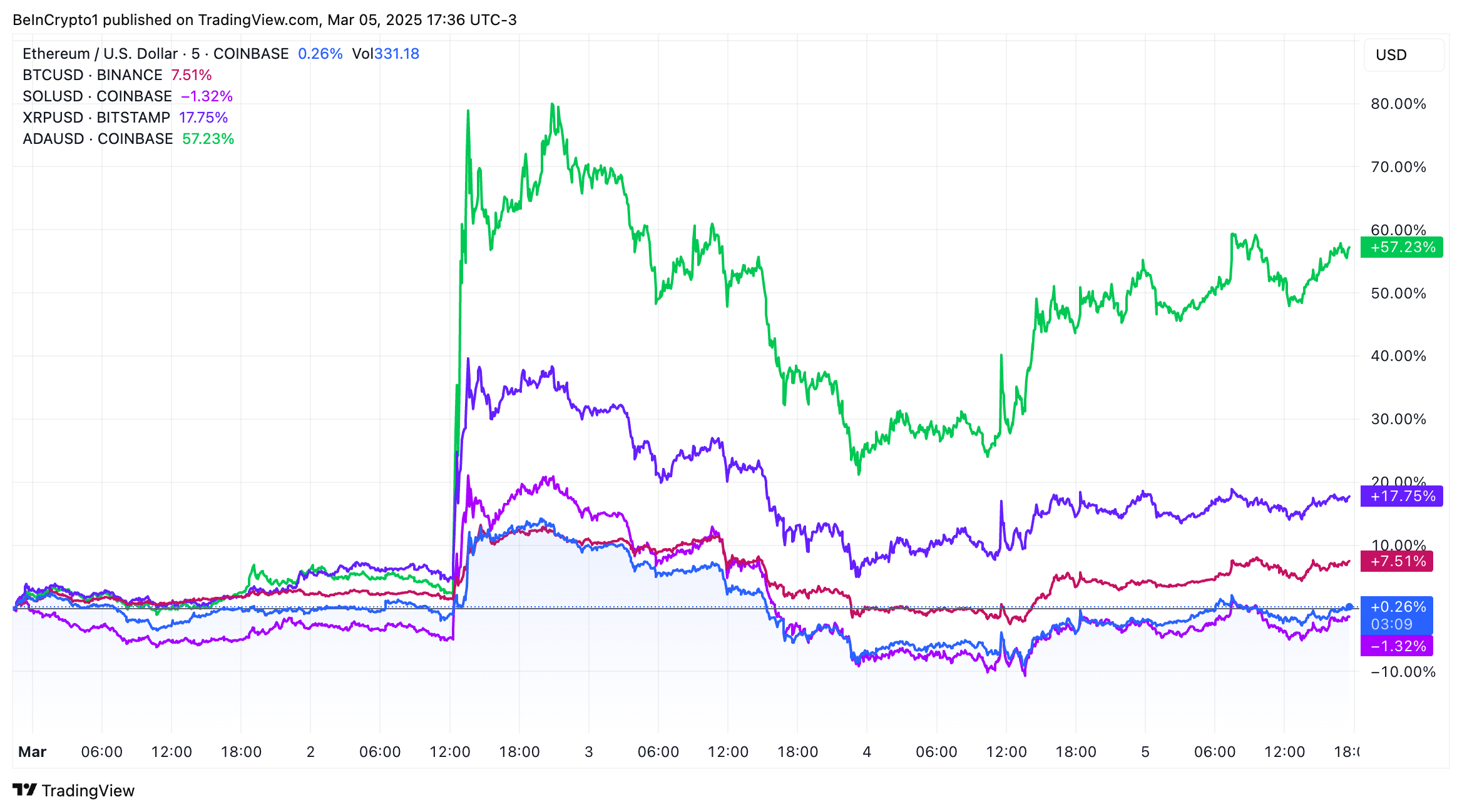 Nyheten om å opprette en nasjonal strategisk krypto-reserve alene sendte Bitcoin og andre altcoin priser til værs.