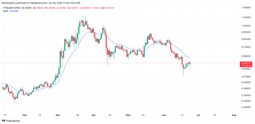 På pressetidspunktet handles FTM til $0,57. Den er for tiden i en oppadgående trend og klar til å krysse over sin 20-dagers EMA.