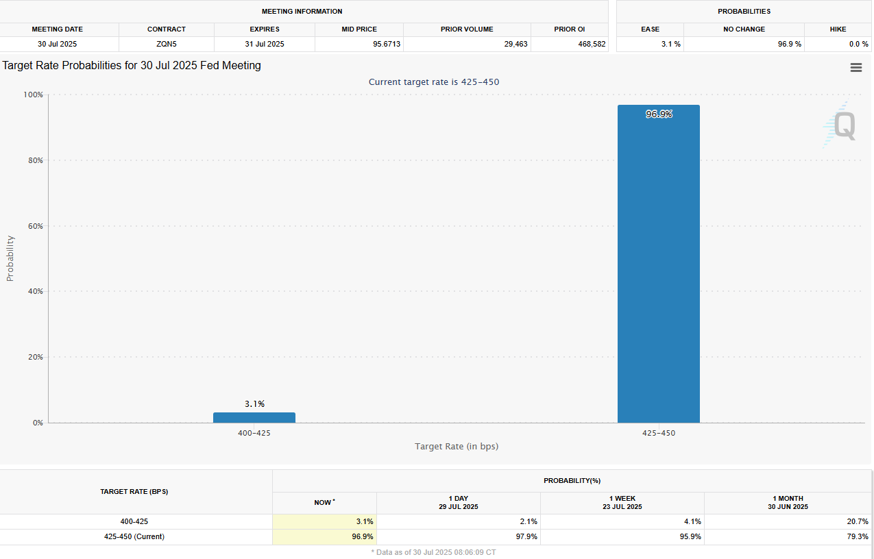 “FOMC forventes igjen i stor grad å holde sin policy uendret neste uke, med komiteen som opprettholder rentene på 4,25 %-4,50 %,” bemerket analytikere ved TD Securities. “Vi forventer at Powell gjentar sin tålmodige, datadrevne policytilnærming mens han opprettholder fleksibilitet rundt komiteens neste trekk i september. Vi tror to dissenter, fra guvernørene Bowman og Waller, er sannsynlige på dette møtet.”