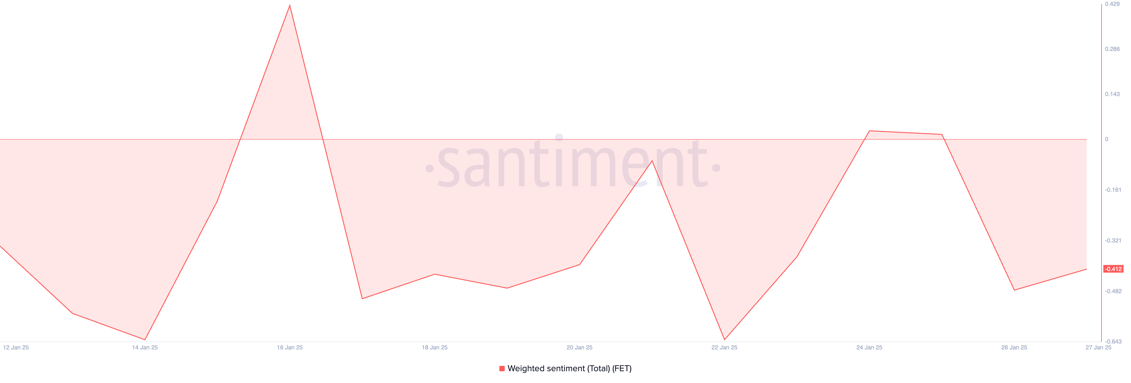 • FET handles under sin 20-dagers EMA, noe som indikerer økende bearish momentum.