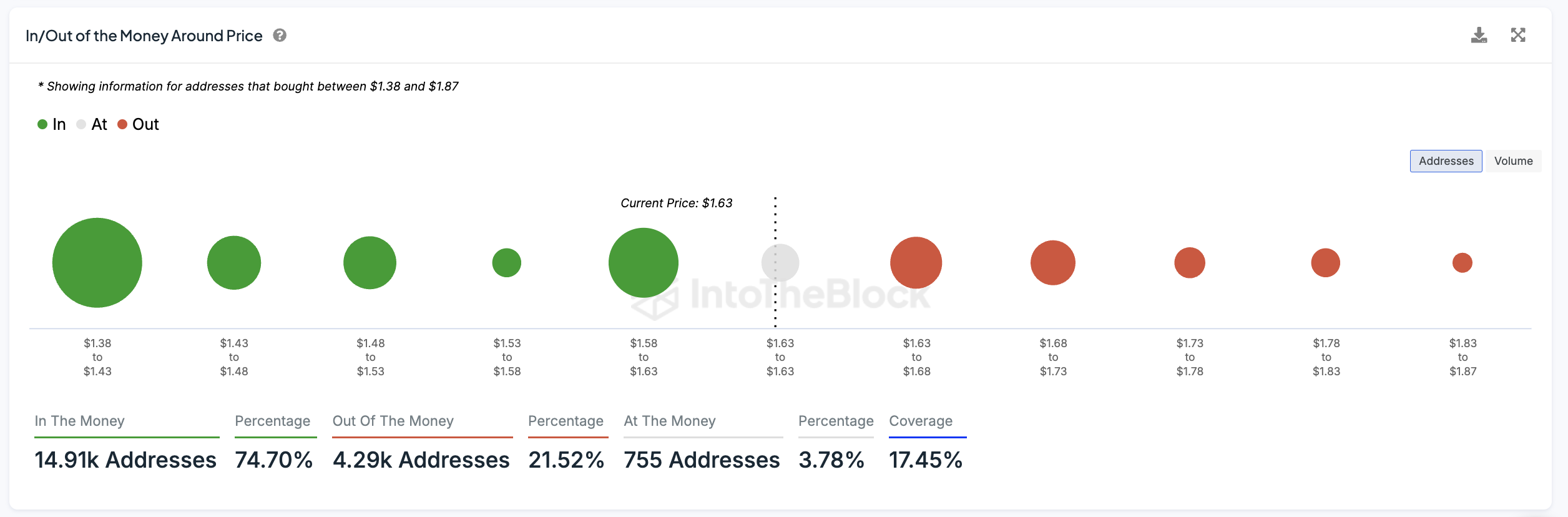 Ifølge In/Out of the Money Around Price-diagrammet møter FET sterk motstand ved $ 1,68 og svakere motstand ved $ 1,73. Hvis disse nivåene brytes, kan FET raskt stige til $ 1,87, noe som gir en potensiell gevinst på 14,7 %. Dette kan drives av all hypen rundt kunstig intelligens-mynter, som ser ut til å være på vei opp for tiden.