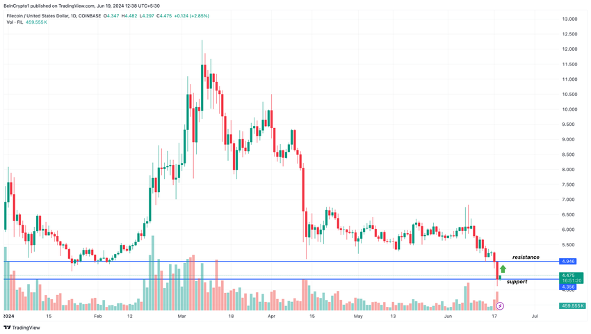 Når man ser på FIL fra et teknisk perspektiv, stemmer indikatorene overens med den potensielle bullish prediksjonen. På det daglige diagrammet forsvarer okser $4,35-regionen og bruker den som støtte for å forhindre en ytterligere nedgang.