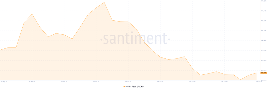 I skrivende stund er FLOKIs MVRV-forhold 475,71%. Til denne verdien har meme-myntholderne for tiden posisjoner verdt fire ganger den opprinnelige investeringen.
