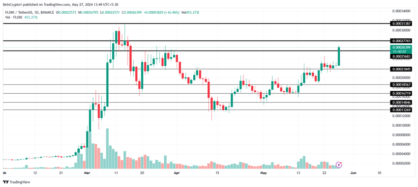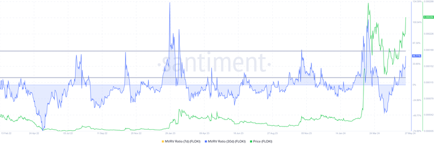 Flokis pris er nær de årlige toppnoteringene som ble notert i mars, men sannsynligheten for at altcoinen danner nye høyder er dyster. Dette er fordi FLOKI-innehavere sannsynligvis vil bokføre fortjeneste.