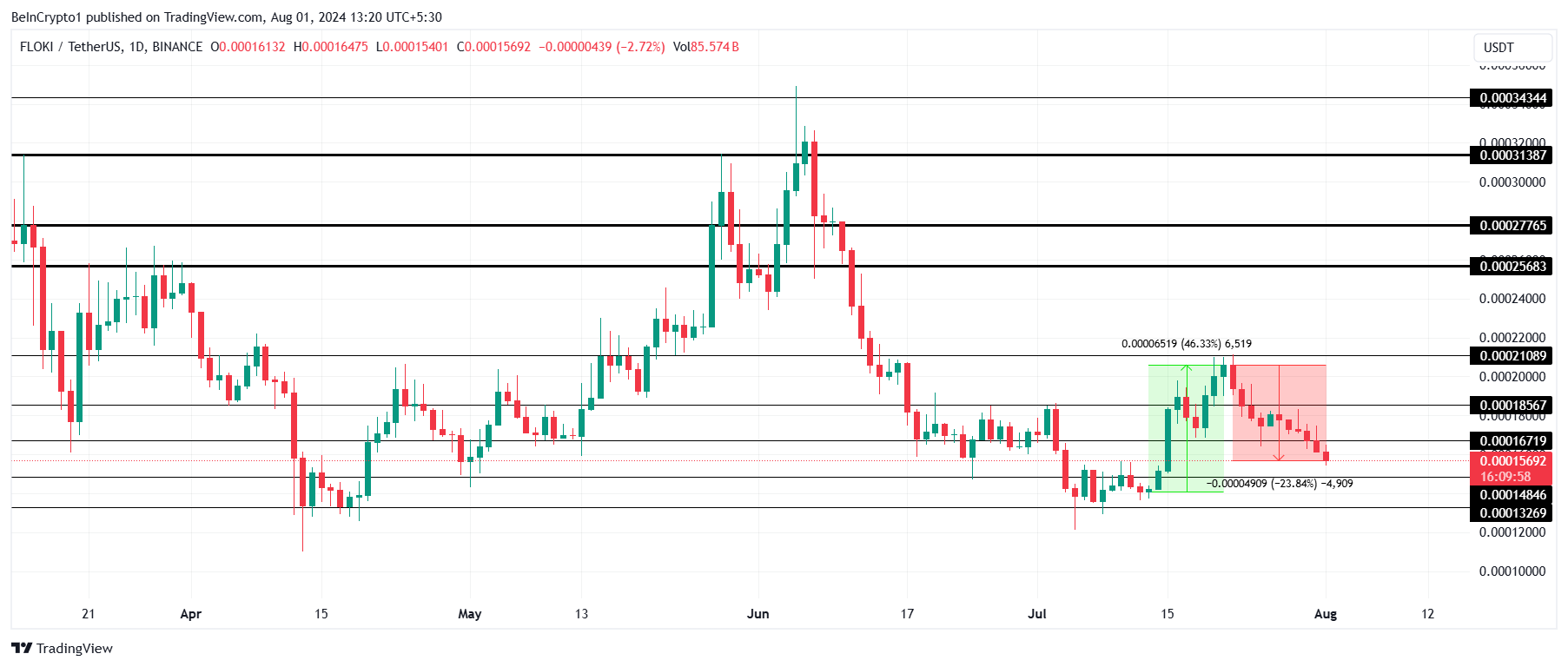 FLOKIs nedgang har vært uendret siden begynnelsen av juli, noe som bidrar til nedgangen.
