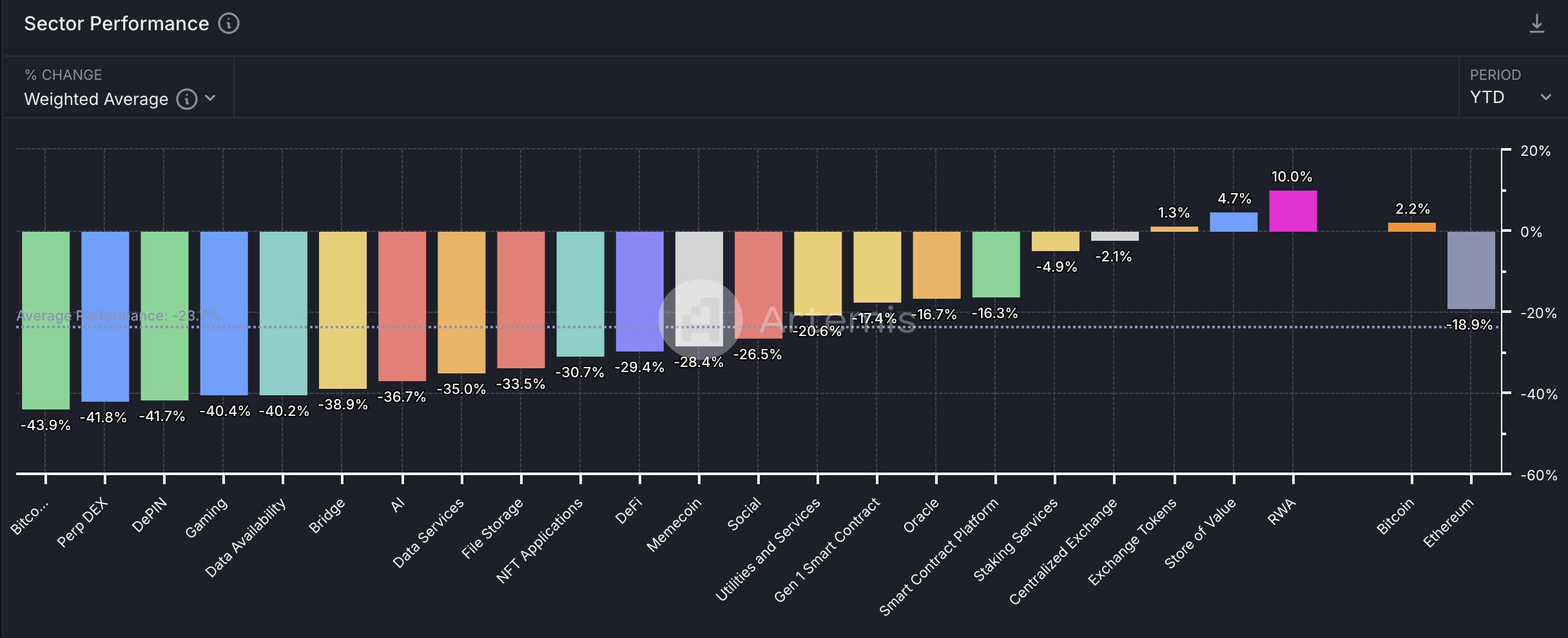 I mellomtiden har RWA-sektoren opplevd betydelig vekst, og fremstår som den best presterende sektoren tidlig i 2025. Sektoren har sett en økning på 10,0 % hittil i år (YTD) og en bemerkelsesverdig økning på 27,3 % den siste måneden.