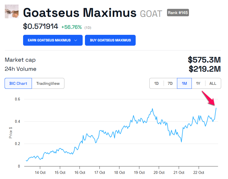 GOAT pris når ATH, markedsverdi overstiger $ 570 millioner