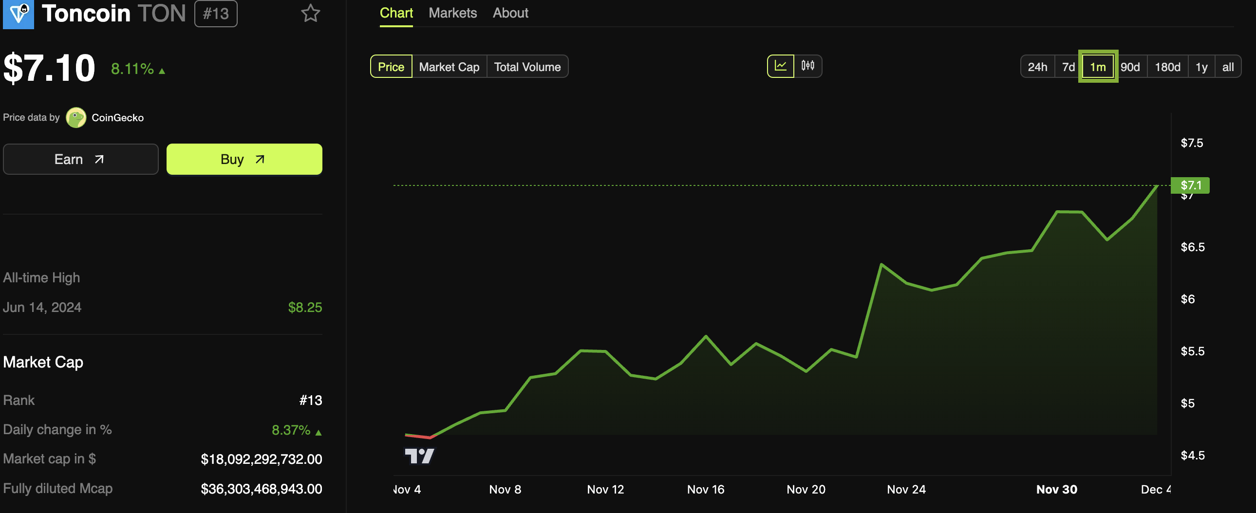 Uansett er Telegrams Toncoin (TON) blokkjede absolutt et fruktbart grunnlag for meme coin-ekspansjon. For to måneder siden lanserte den Memelandia, et desentralisert meme coin-knutepunkt, for å fremme vekst i denne sektoren. TONs underliggende pris har jevnt steget denne måneden, noe som ytterligere hjelper nye profittmuligheter.