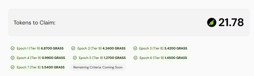 Det er verdt å merke seg at Grass ennå ikke har aktivert krav for disse tokenene. For øyeblikket kan airdrop-deltakere bare verifisere sine tildelte mengder. Derfor bør brukere være oppmerksomme på svindelaktige lenker som tillater å kreve tokenene.