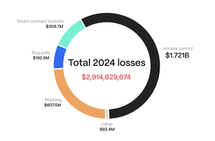 I følge Hackens rapport resulterte tilgangskontrollutnyttelser, hovedsakelig knyttet til kompromittering av private nøkler, i tap som oversteg $ 1,7 milliarder i 2024. Dette er en betydelig økning fra $ 1 milliard rapportert året før.