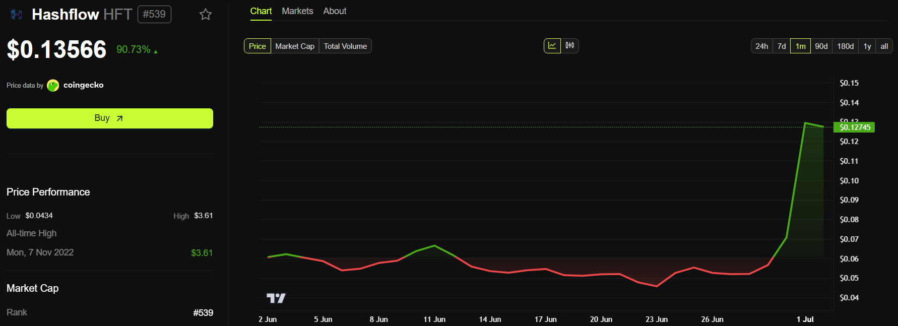 Hashflow (HFT) leder DEX-tokens med en økning på over 100 %