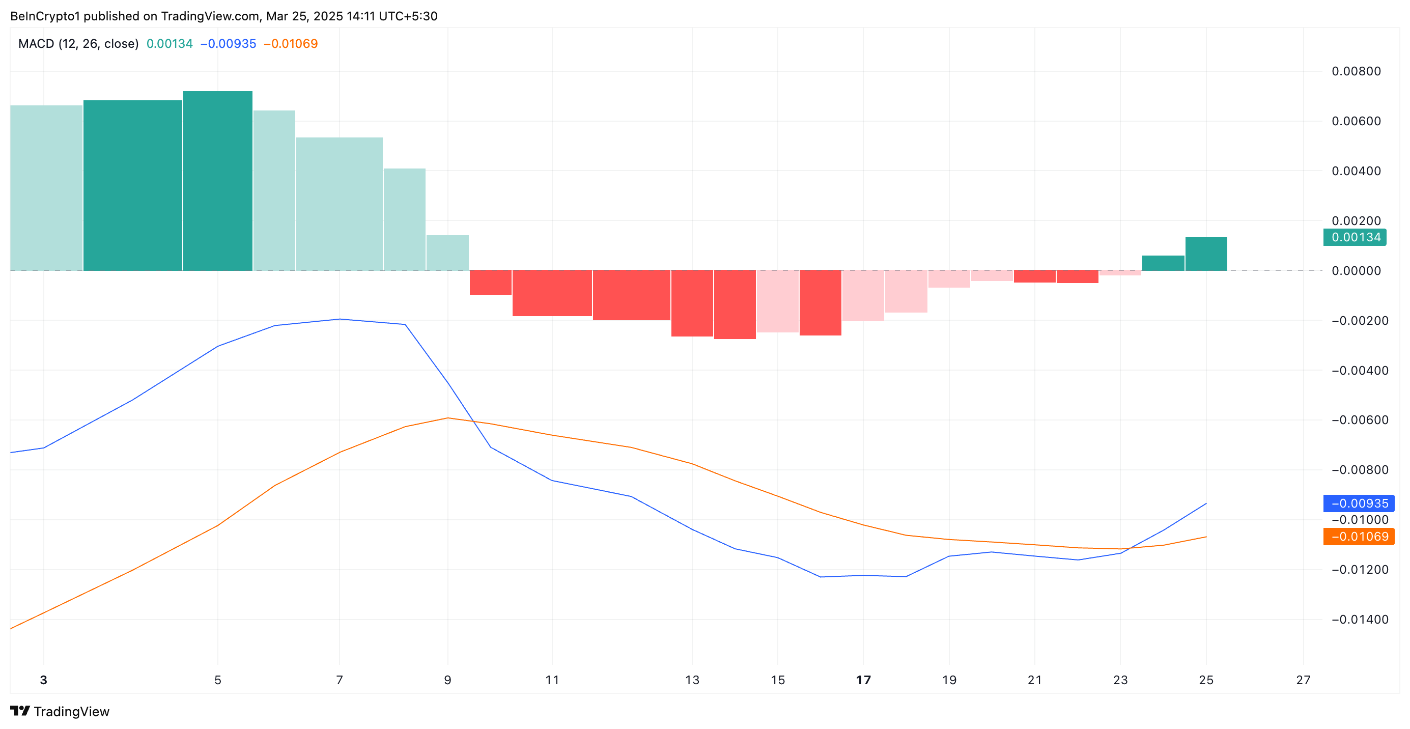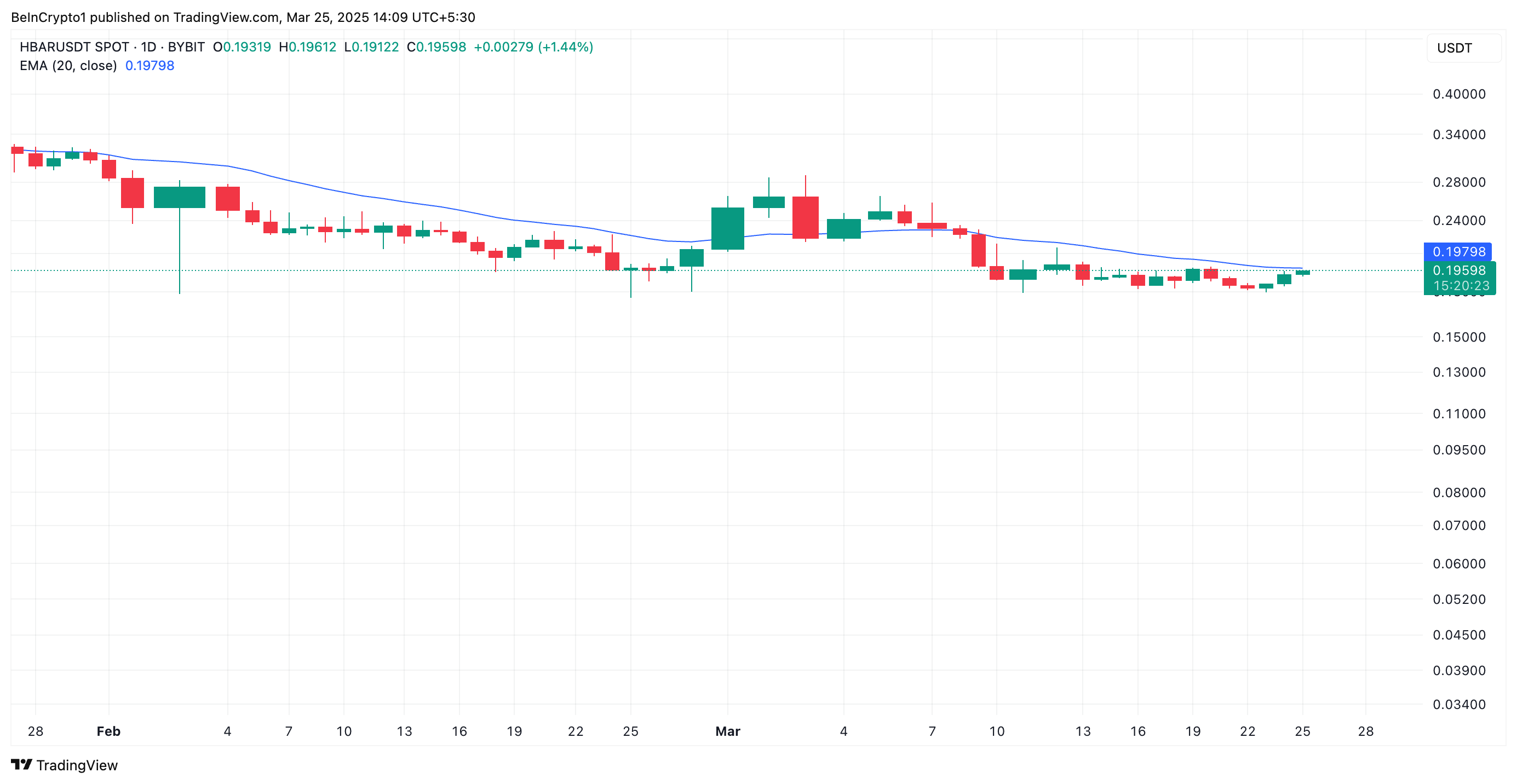 Når en aktivas pris er klar til å bryte over 20-dagers EMA, signaliserer det et potensielt skifte fra bearish til bullish momentum, noe som indikerer økt kjøpspress. Hvis HBARs brudd opprettholdes, vil markedsstemningen bli positiv, noe som fører til ytterligere prisgevinster.