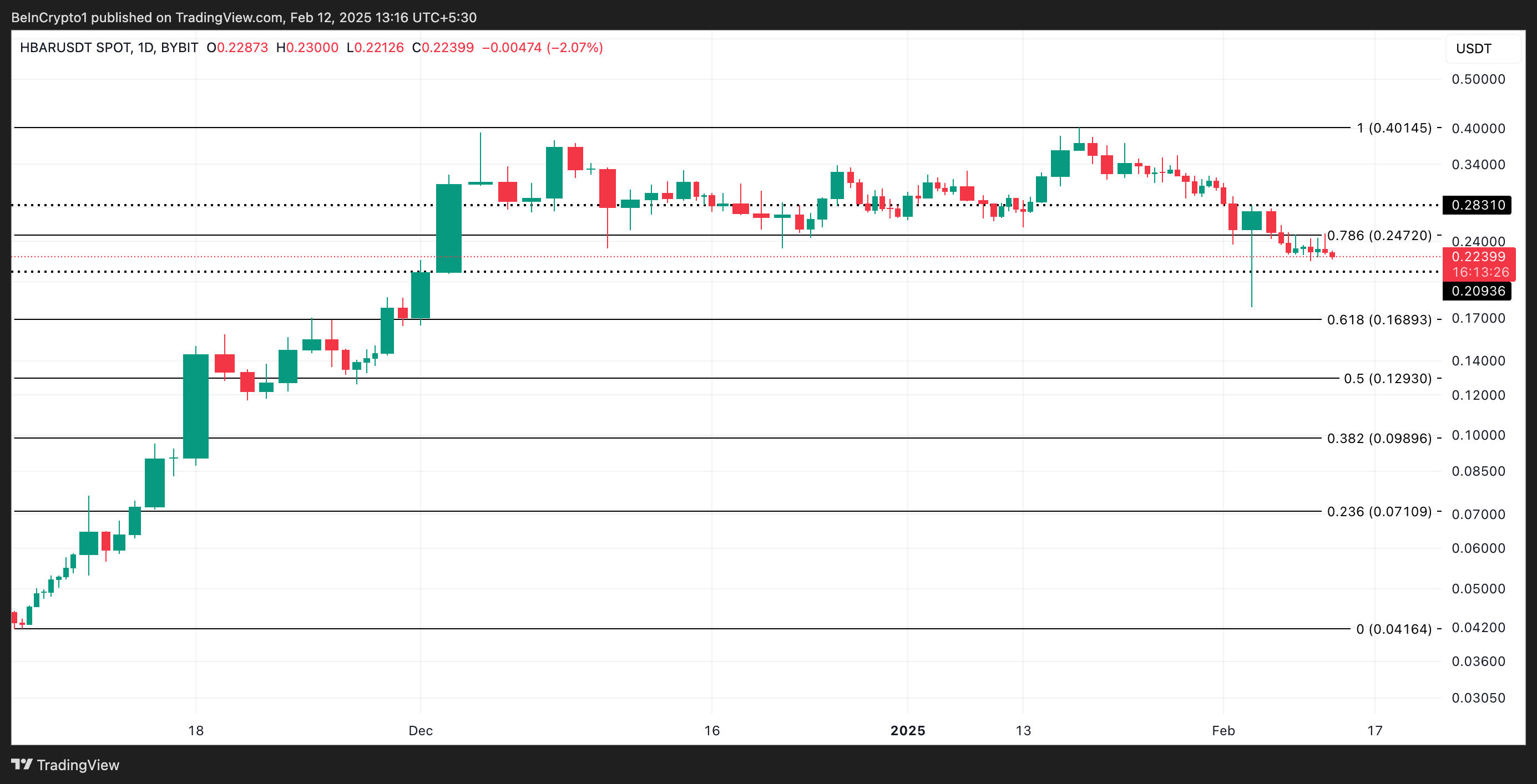 På den annen side, hvis bullish momentum vender tilbake til markedet, kan HBAR starte en oppgang over $ 0,24-motstanden. Hvis den bryter dette nivået, kan den stige videre til $ 0,28.