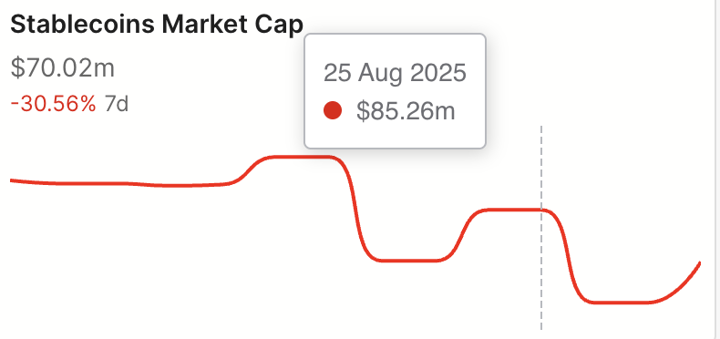 En nedgang i et nettverks stablecoin-markedsverdi signaliserer redusert likviditet og lavere brukerengasjement. Stablecoins er en nøkkelmåling av on-chain aktivitet, da de muliggjør handel, betalinger og andre desentraliserte finansielle operasjoner.