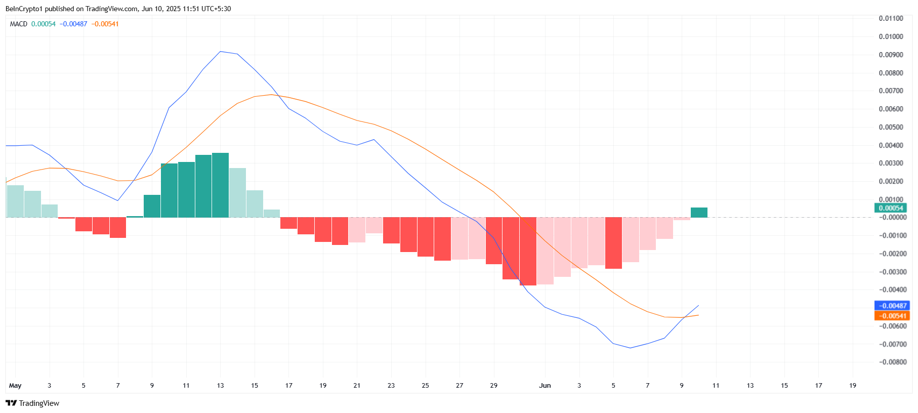 For øyeblikket signaliserer MACD (Moving Average Convergence Divergence) indikatoren et bullish kryss. Dette skiftet markerer slutten på et bearish kryss som hadde vært aktivt i mer enn tre uker. At MACD-linjen krysser over signallinjen antyder en potensiell reversering i momentum, noe som kan hjelpe HBAR med å gjenopprette sine nylige tap. Dette skiftet er spesielt betydningsfullt for tradere som ønsker å gjenvinne tillit til tokenets prisbevegelse.