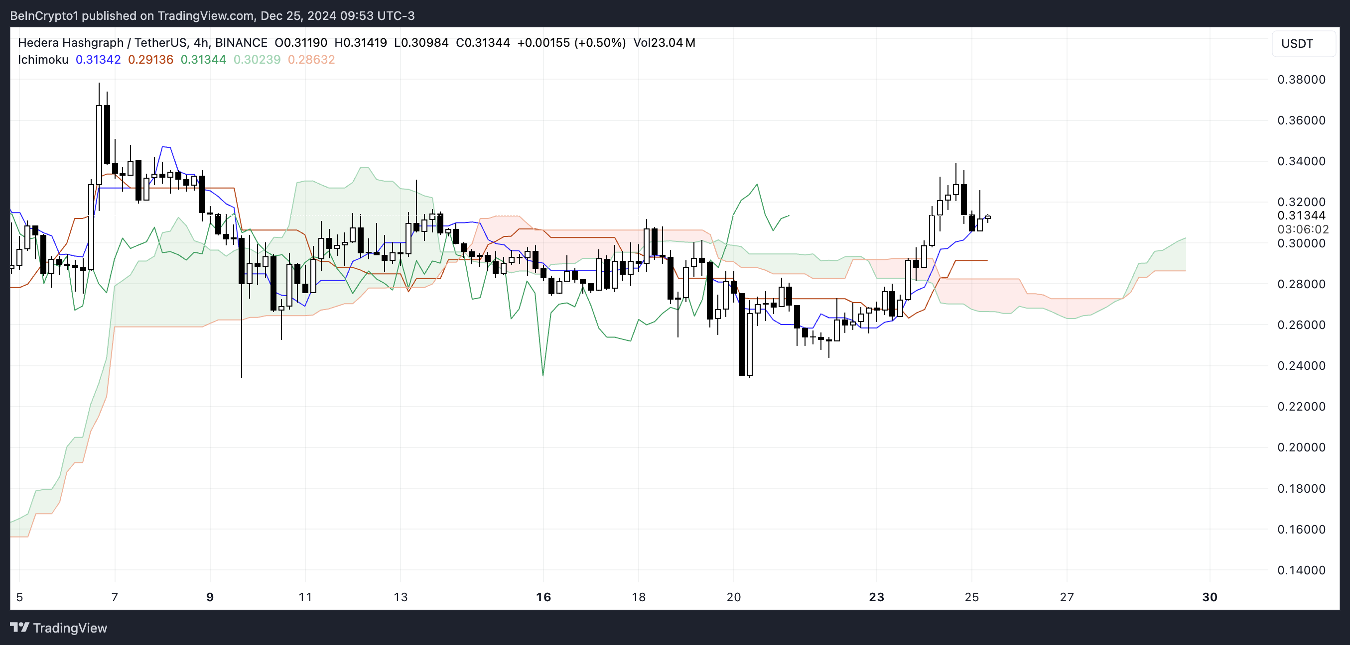HBAR Ichimoku Cloud. Kilde: TradingView