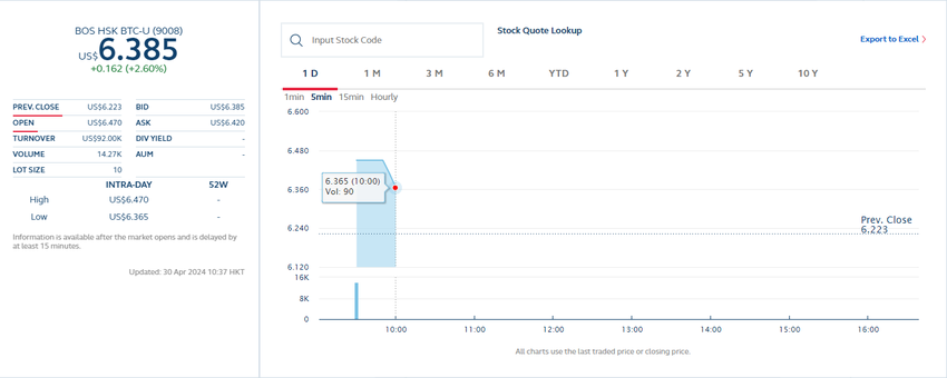 Åpningskursene på Hongkong-børsen var lovende. BOS HSK BTC og BOS HSK ETH åpningspriser er henholdsvis HKD 50,540 og HKD 25,340. Deres USD-kolleger så også en robust start på $ 6,470 og $ 3,238.