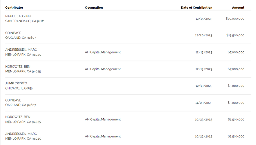 PAC har fått bidrag fra en rekke kryptofirmaer, inkludert Coinbase og Ripple. I tillegg har den mottatt individuelle donasjoner fra bemerkelsesverdige kryptofigurer som Marc Andreessen og Ben Horowitz fra venturekapitalfirmaet Andreessen Horowitz (a16z) og Winklevoss-tvillingene til kryptobørsen Gemini.