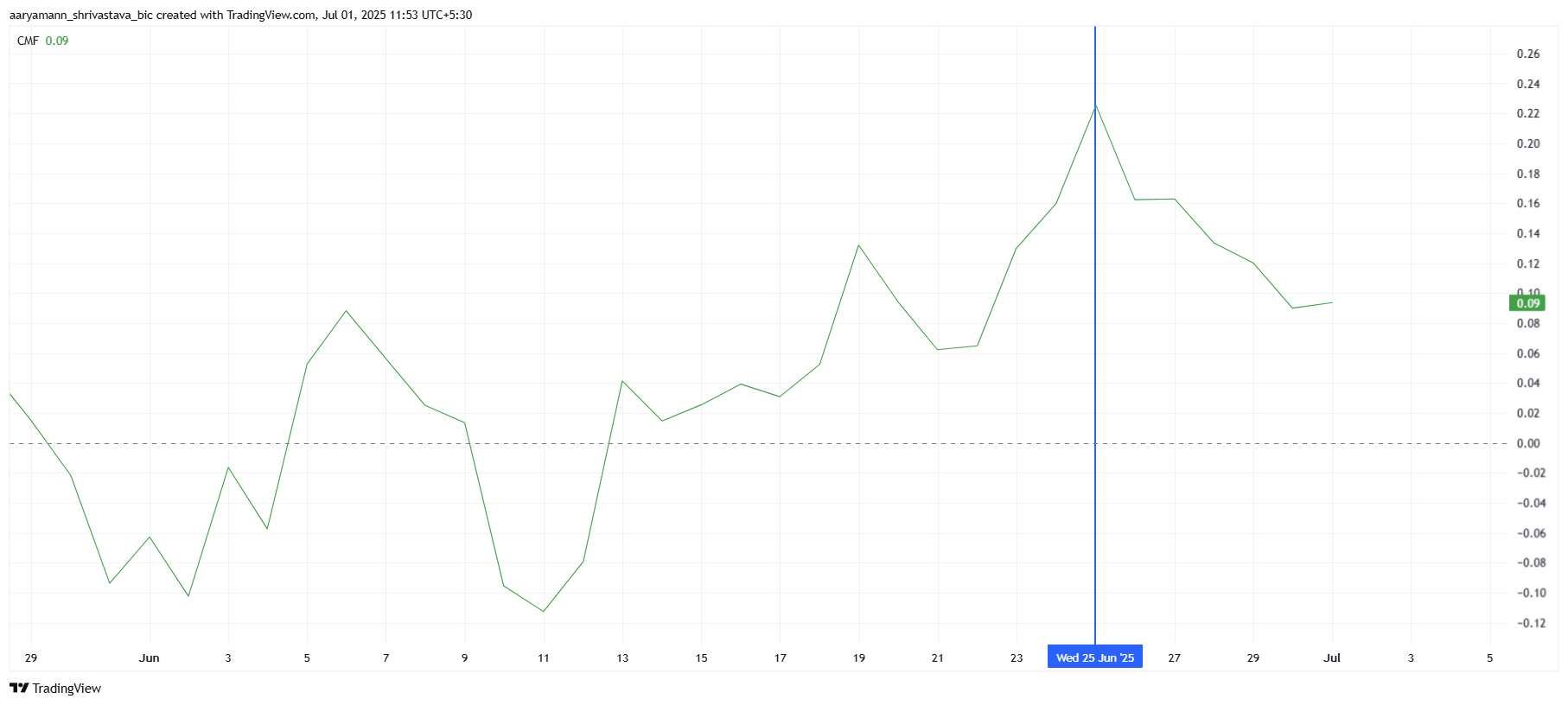 Pi Coins makro momentum har også blitt påvirket av en nedgang i Chaikin Money Flow (CMF) den siste uken. CMF-indikatoren, som sporer akkumulering og distribusjon av en aktiva, har vært på vei nedover, noe som signaliserer økt salgspress. Mens tidligere innstrømninger ga noe håp om en potensiell trendvending, tyder de påfølgende utstrømningene på en svekkelse av investor tillit til Pi Coin.