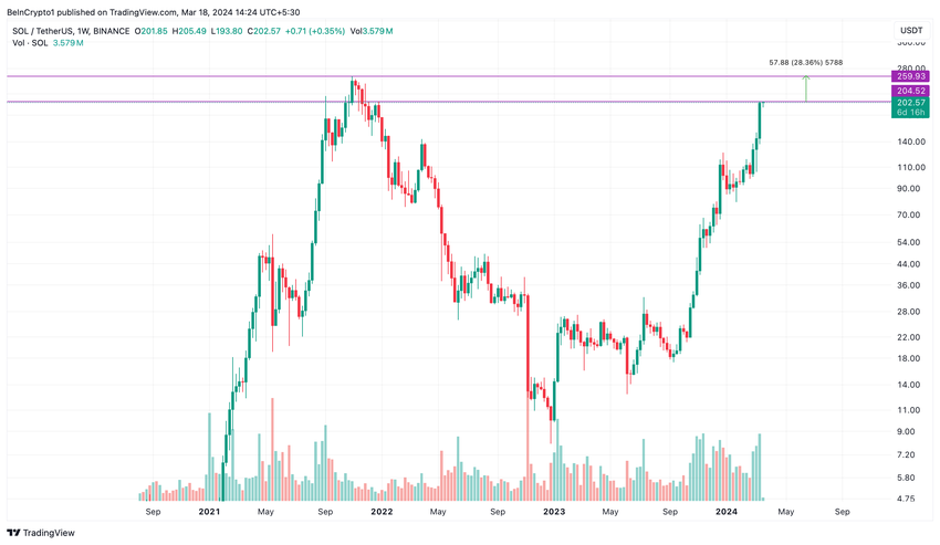 Hvis Solana skulle lukke daglig over motstandsnivået, er det minimalt med hindringer i veien for nye toppnoteringer. I mellomtiden har markedsverdien allerede oversteget tidligere rekorder.