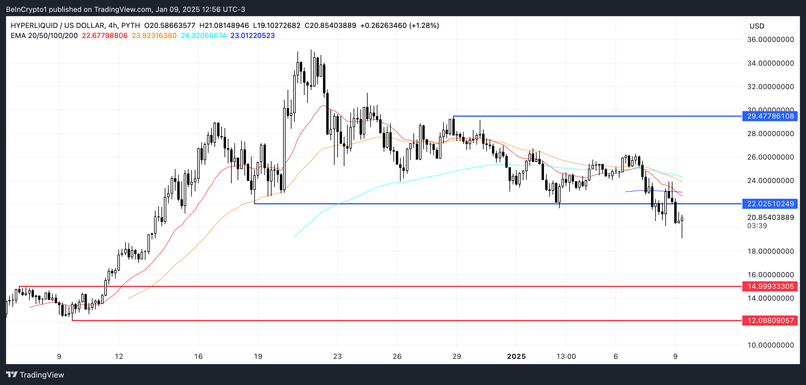 Omvendt, hvis HYPE klarer å snu trenden, kan den teste motstanden på $ 22. Et brudd over dette nivået, kombinert med sterkt oppadgående momentum, kan presse prisen til $ 29 og potensielt over $ 30, og bringe HYPE tilbake til de 20 beste altcoins i markedet.