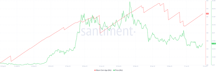 Overbevisningen utvist av INJ-innehavere, potensielt til og med hvalene, er et positivt tegn for eiendelen. Den gjennomsnittlige myntalderen viser dette i oppgangen, som har vært konsistent siden midten av juni.