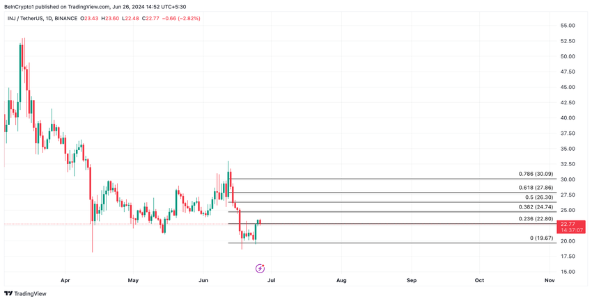 Når det spekulative kjøpet stopper, vil INJ kaste alle gevinstene og handle til $19,67.