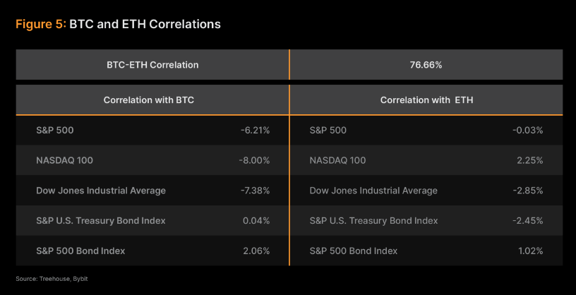 I tillegg er BTC i ferd med å få fotfeste som en strategisk sikring mot TradFi, med minimal korrelasjon med store aksjeindekser. En beskjeden allokering på 5 % hver til BTC og ETH kan øke Sharpe-forholdet i en S&P 500-portefølje med 43,6 %, noe som understreker potensialet til kryptovalutaer som diversifiseringsverktøy i investeringsporteføljer.