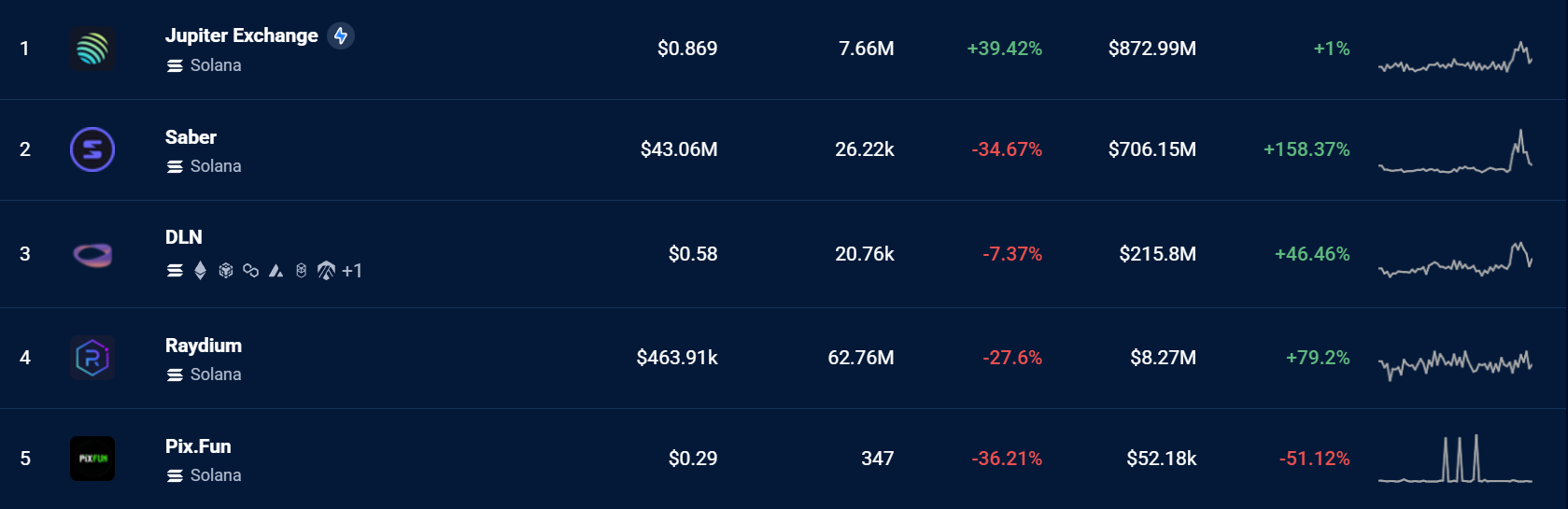 Jupiter er for tiden den største desentraliserte børsen på Solana-nettverket. I løpet av den siste måneden registrerte børsen over $ 870 millioner i handelsvolum.