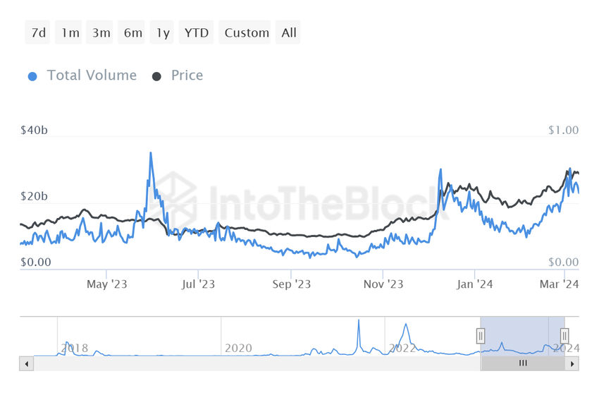Til tross for at de sitter på mindre enn 9 % av hele den sirkulerende Cardano-beholdningen, står disse hvalene for rundt 90 % av de totale transaksjonene i kjeden. I løpet av den siste uken nådde de totale transaksjonene 30 milliarder dollar, mens hvaltransaksjonene nådde 25 milliarder dollar.