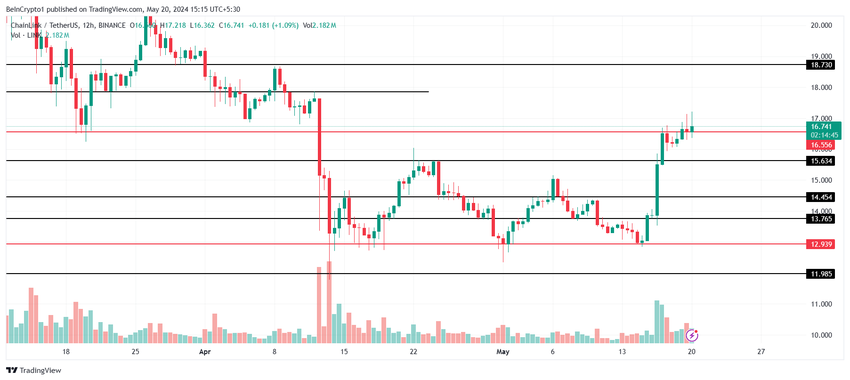 Chainlinks pris, som handles til $ 16.8, brøt flere motstander for å presse forbi motstanden på $ 16.5. Nærmere $ 17,0 noterer altcoin et stort rally. Imidlertid kan dette presset som brakte LINK til en månedlig høyde også føre til en nedgang.